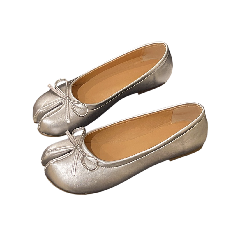 حذاء نسائي مسطح ومريح من الجلد ذو مقدمة منفصلة مزين بفيونكة